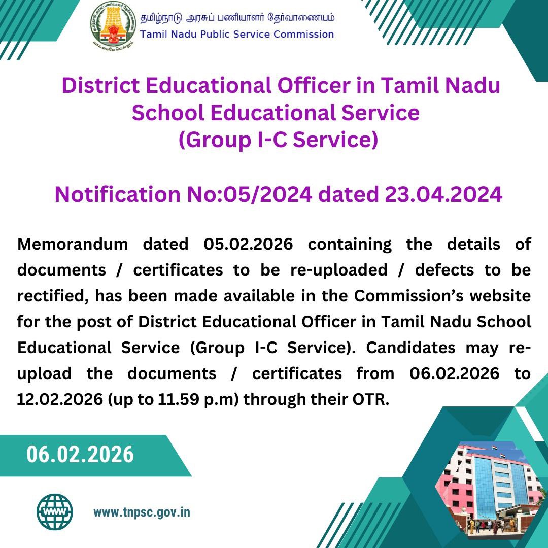 TNPSC District Educational Officer (DEO) – Important Memorandum Update