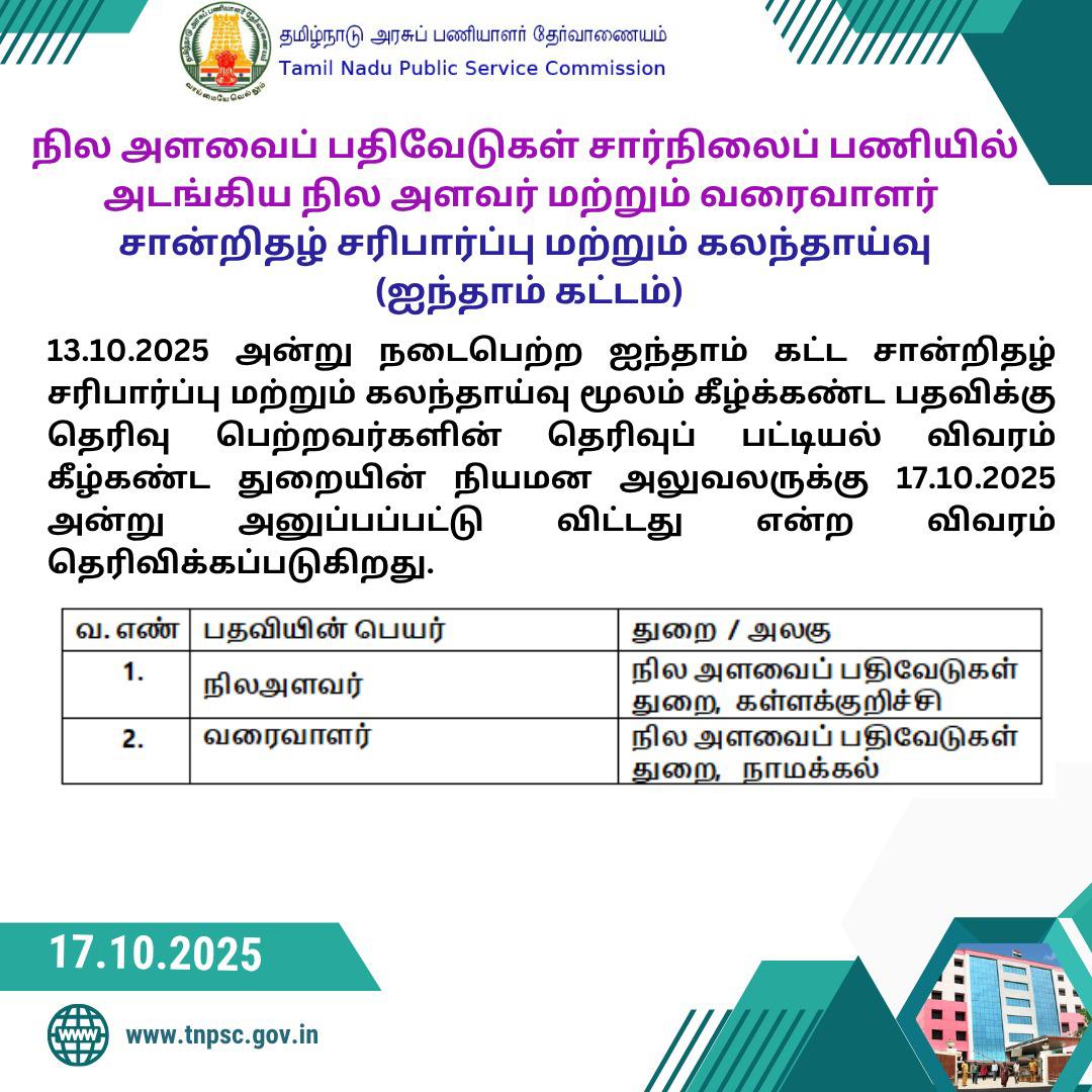 Candidates who attended the verification process can check their results on the TNPSC official website.