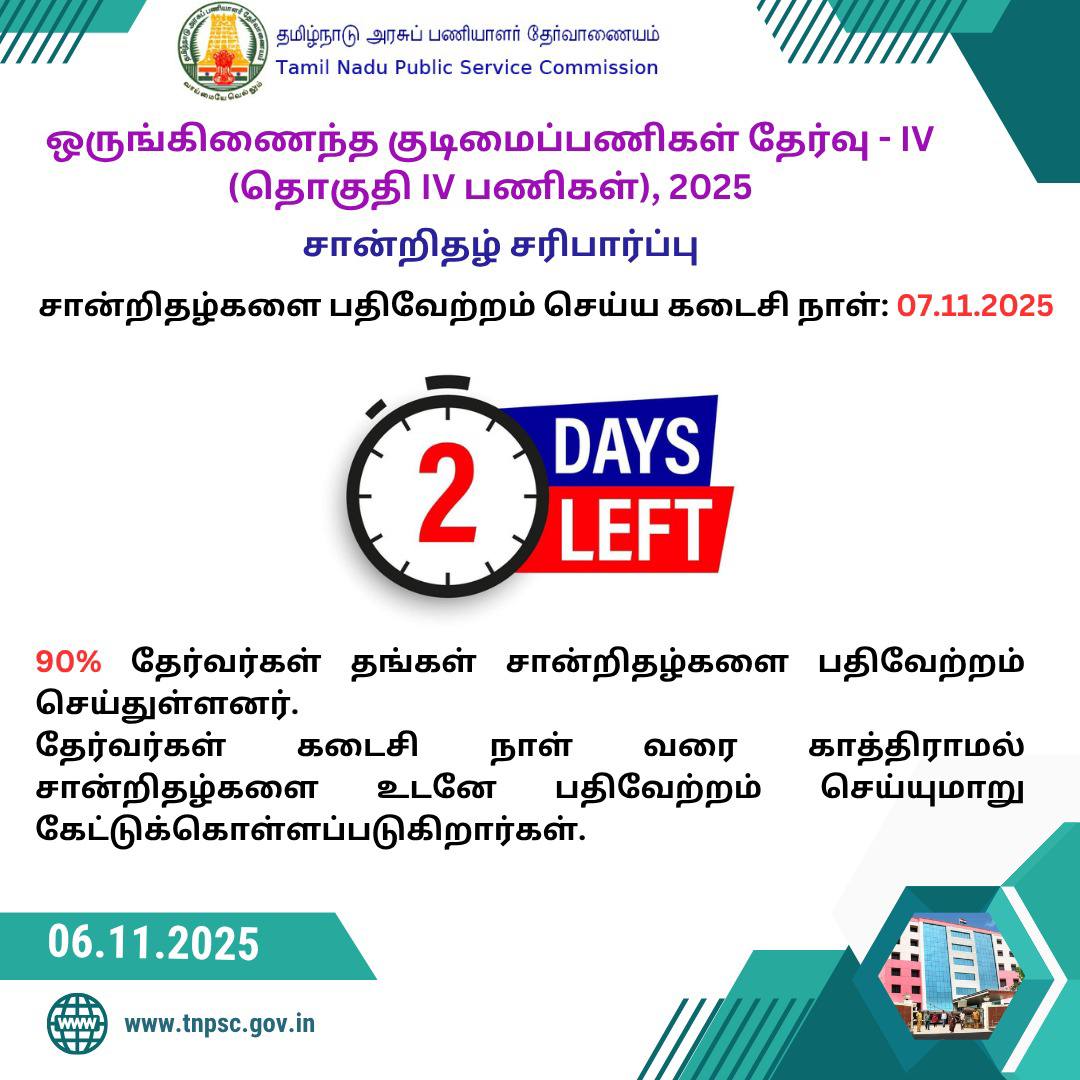 The last date to complete the Certificate Verification process is 07.11.2025.