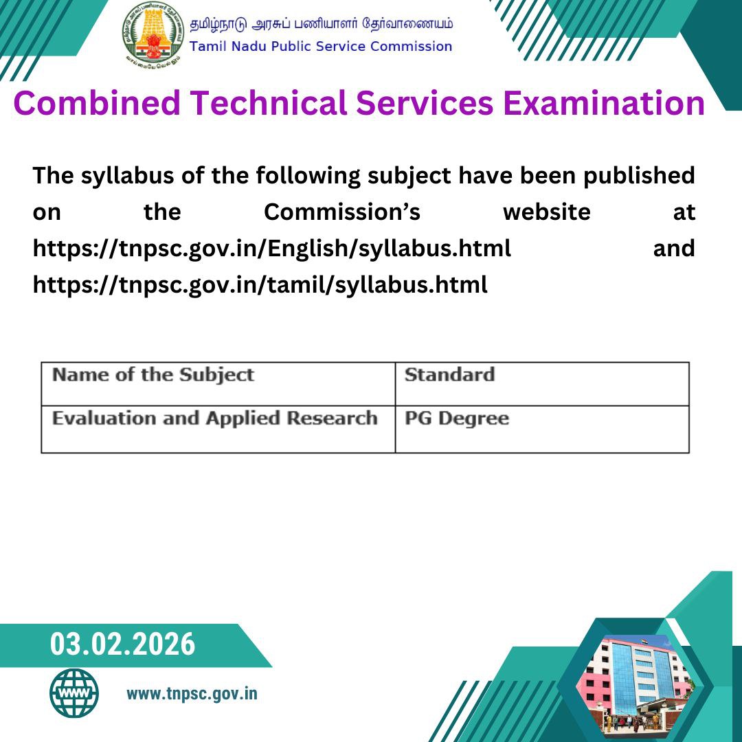 The Tamil Nadu Public Service Commission (TNPSC) has officially released an important update regarding the Combined Technical Services Examination (CTS β Diploma / ITI Level).