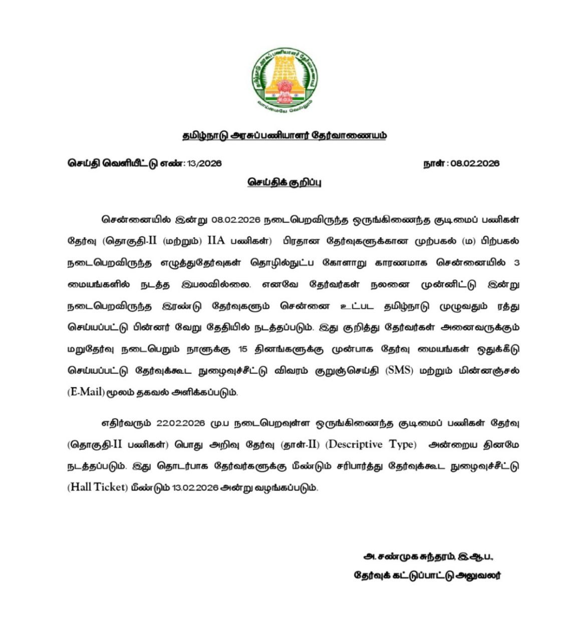 The Group II & IIA Preliminary Examination was conducted on 08.02.2026 across various centres in Tamil Nadu.