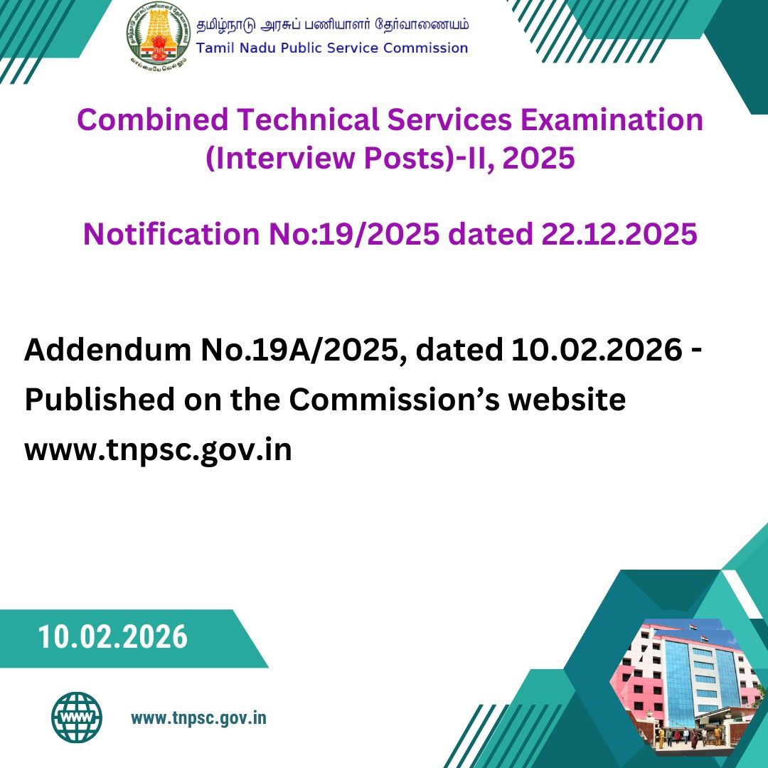 The Tamil Nadu Public Service Commission (TNPSC) has officially released an important update regarding the Combined Technical Services Examination (Interview Posts) under Notification No. 08/2025.