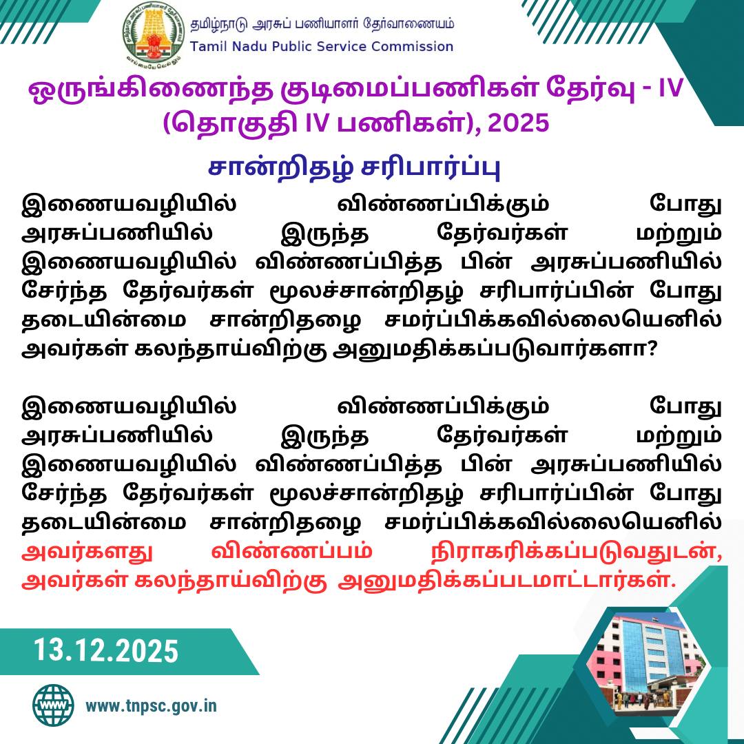 Read More🏛 TNPSC Group IV Onscreen Certificate Verification Announced!The Tamil Nadu