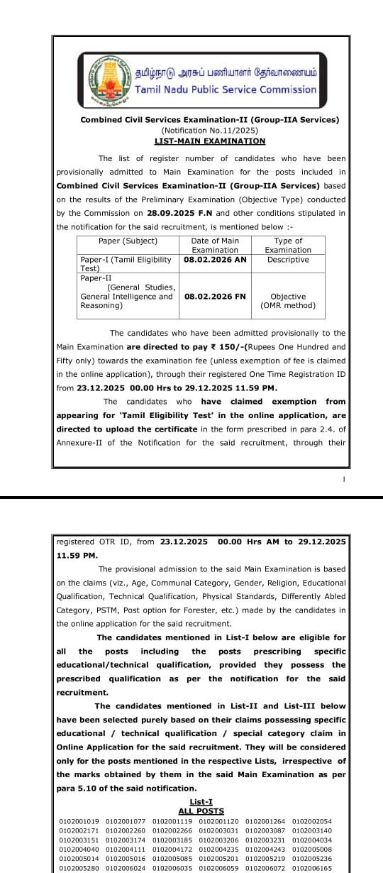 Read More📢 TNPSC Group IIA (CCSE-II) – Phase I Certificate Verification
