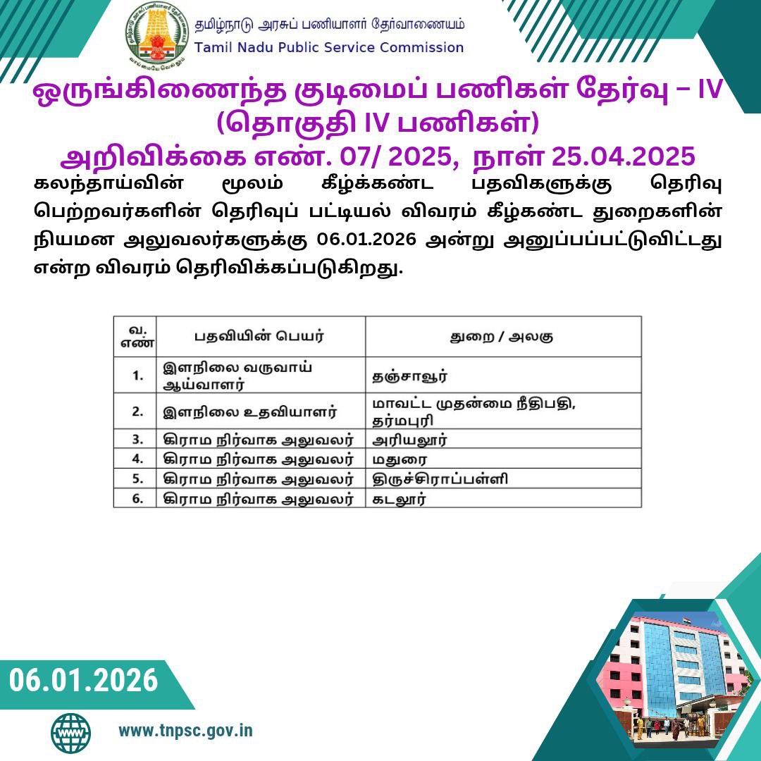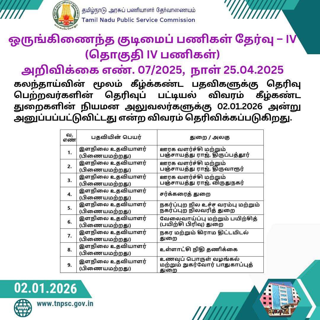 Read More📰 TNPSC Combined Technical Services Examination – Final Selection List